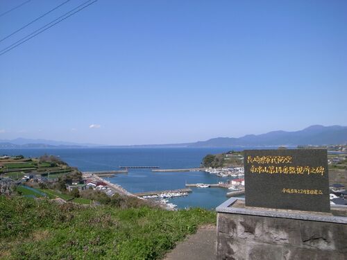 長崎県軍民防空南串山第14監視所 昭和12年(1937)、長崎県が南串山防空監視所を旧南串山町国崎半島に設置したが、昭和15年(1940)からは場所を同町のここ城ノ越に移し、名称も長崎県軍民防空南串山第14番監視所となり、終戦の昭和20年(1945)8月15…