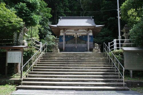 前回の続きでございます。 伊王島を出て川沿いの細い道に入りまして山中へ。 道中のうなぎ屋さんの看板に惹かれつつ「土井首大山祇神社」へ到着です。 なんかちょっとチワワ味ある狛犬と本殿にご挨拶。目的地は…右手か。 ありました。こちらが地域の英霊を祀…