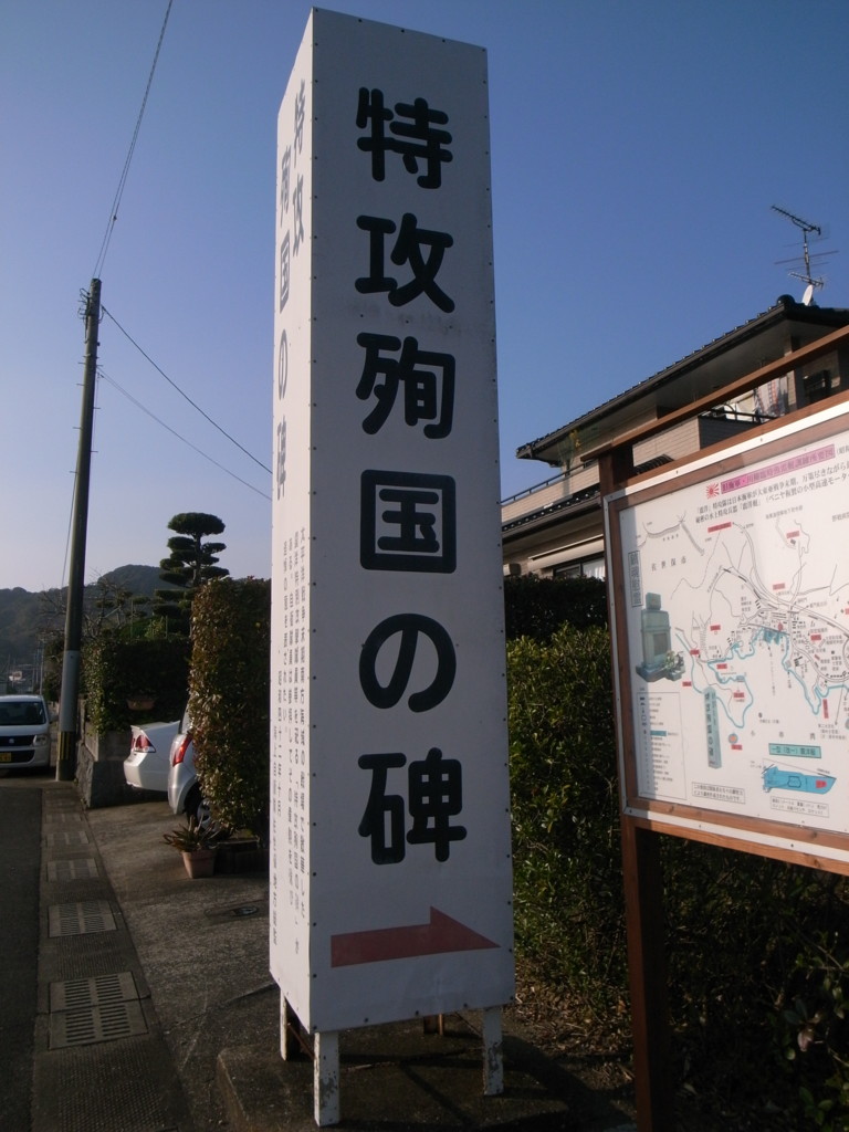 魚雷発射試験場跡地を出て10分程。今度は特攻兵器・震洋の訓練基地沿岸の慰霊碑を目指します。