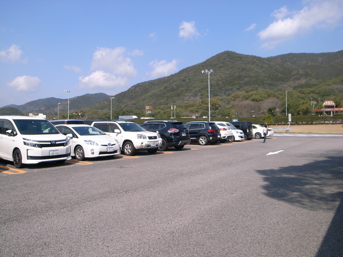 愛野展望台から見える風景は素晴らしいの一言。レストランや売店がある中の駐車場にバイクを駐めて周囲を探索します。