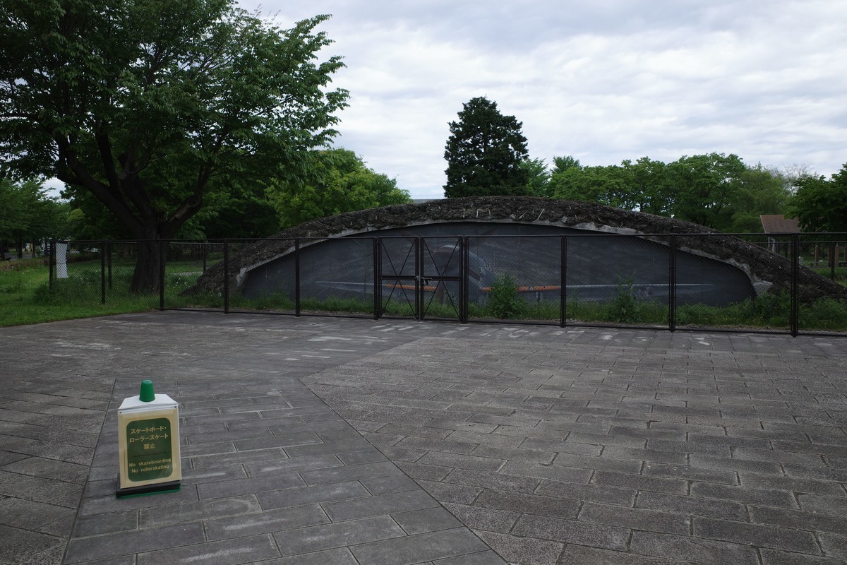 小さな公園になっており、ベンチや広場も併設してありました。掩体壕内には白線で飛行機の型が引いてある模様。こういう公園良いっス(*'▽')