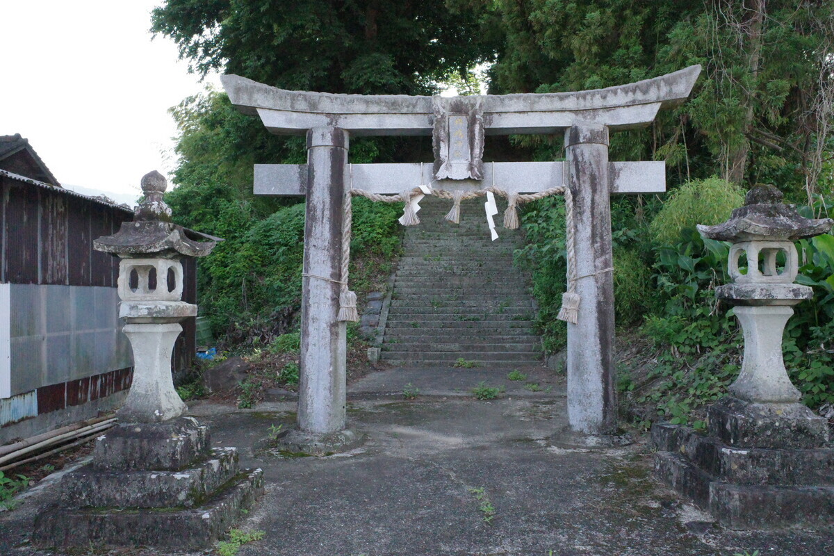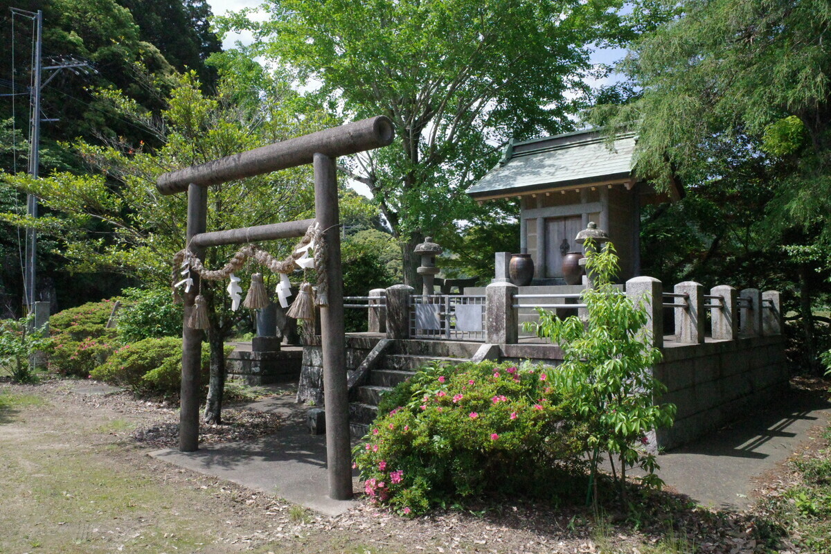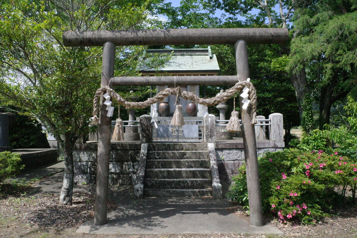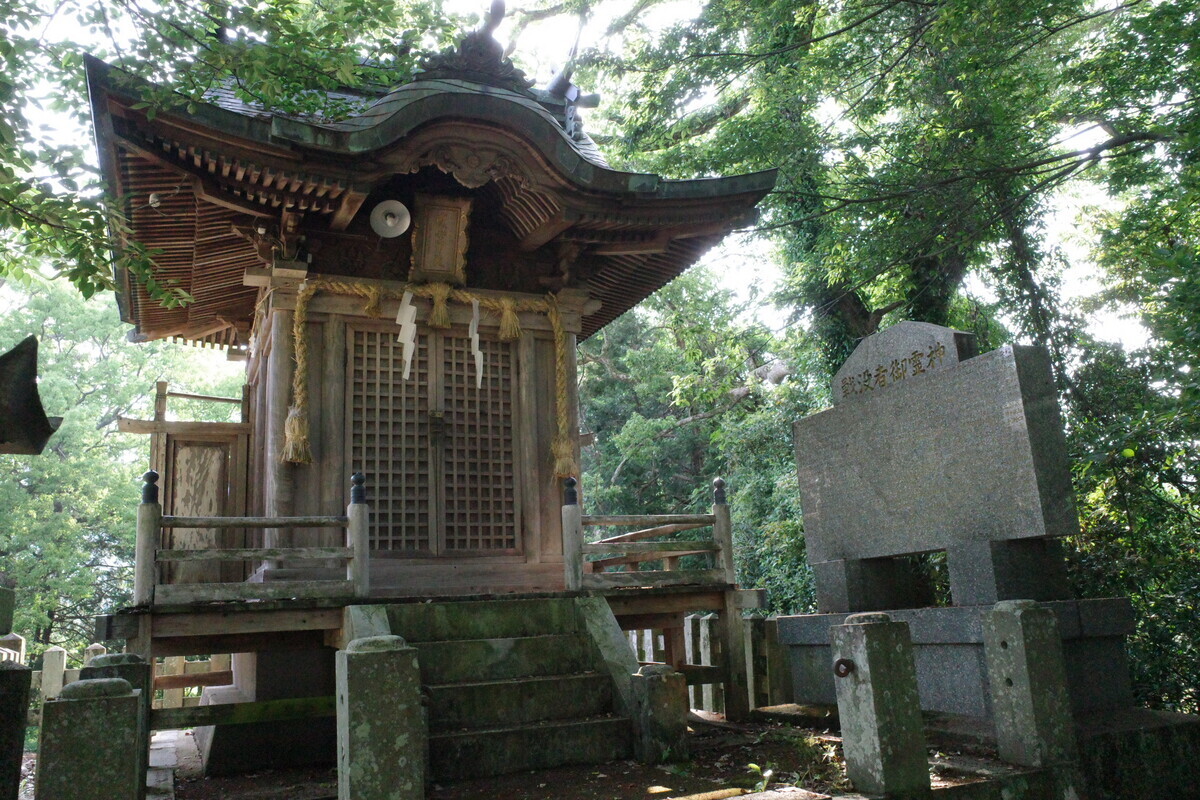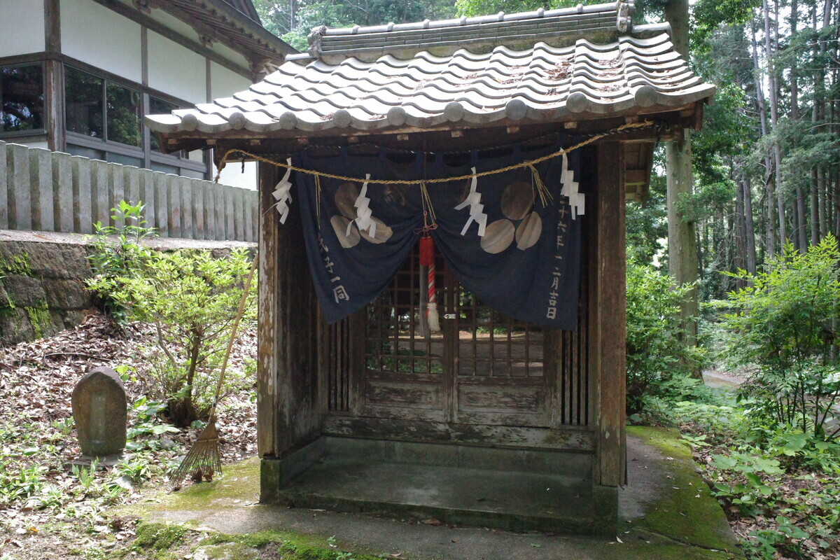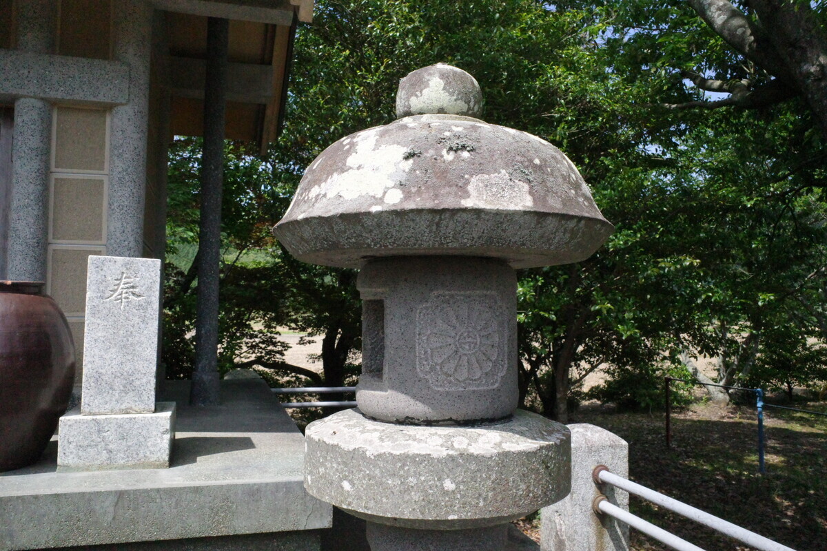 靖国鳥居にこの社殿の形、そして遺族会の献燈…ここに間違いなさそうです。こちらが地区の英霊を祀った「納骨社」ですね。手を合わせて慰霊の念を送りました。