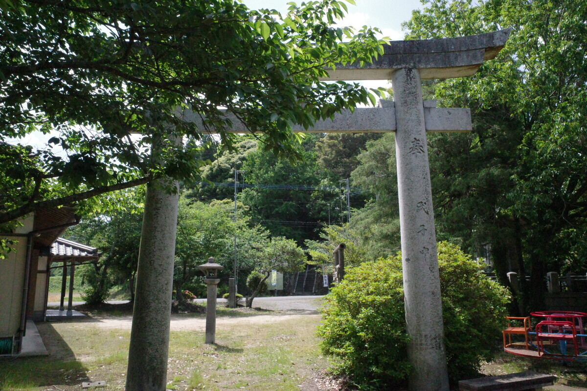 階段を降りた先に公園っぽい場所があるのですが、そこの一の鳥居横に末社が一つ。