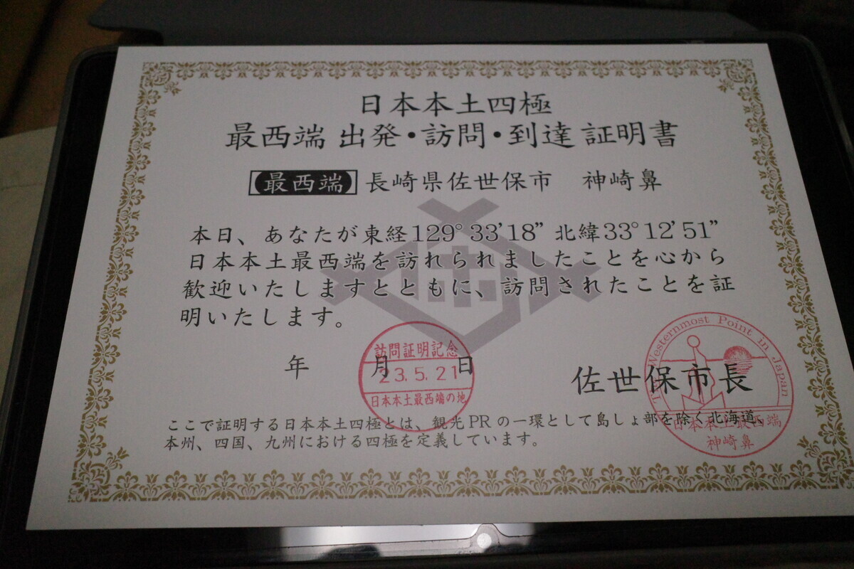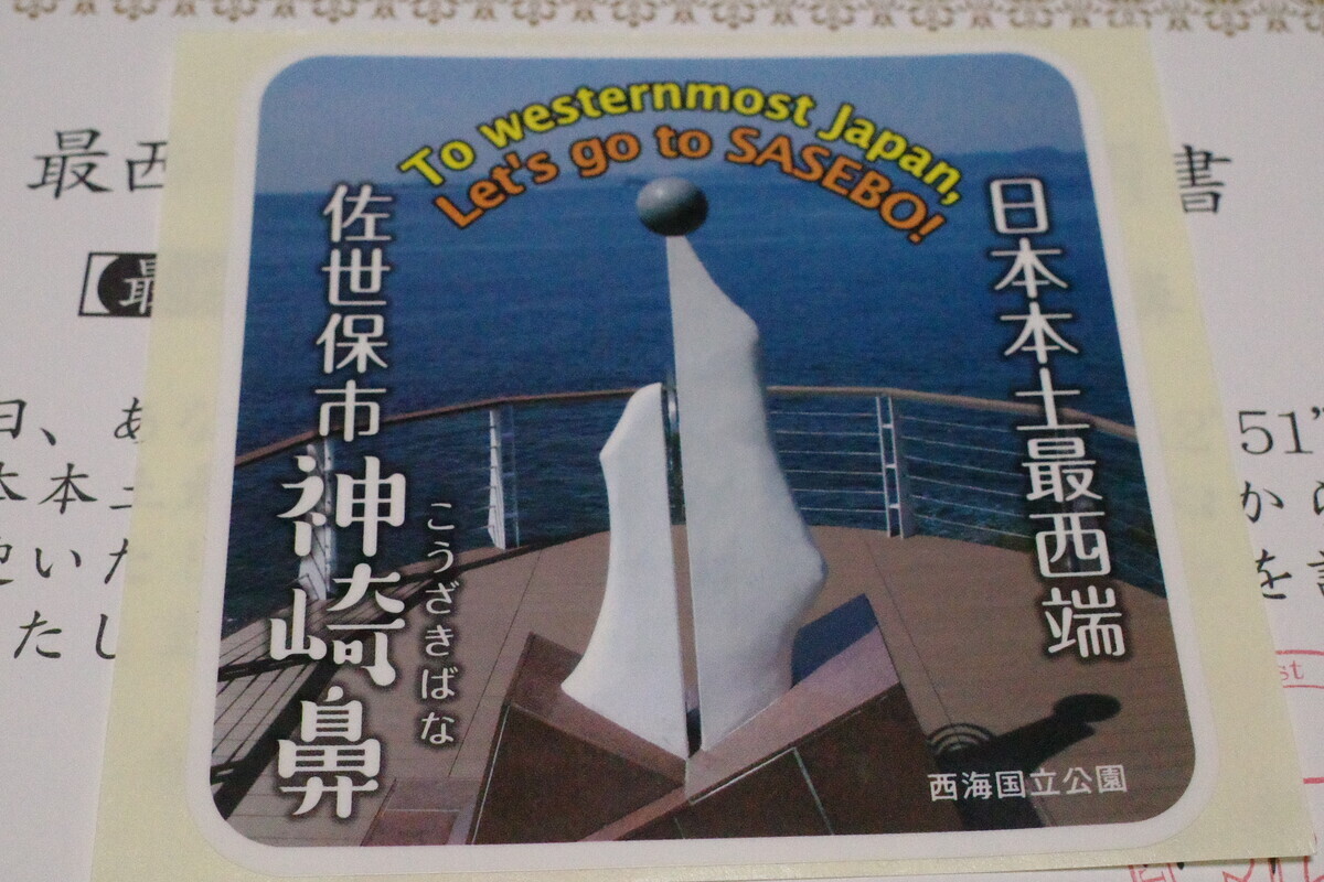 途中のコミュニティセンターで証明書を貰ったり、道の駅で佐世保海軍ソフトを食べたりしながら最終目的地へ。