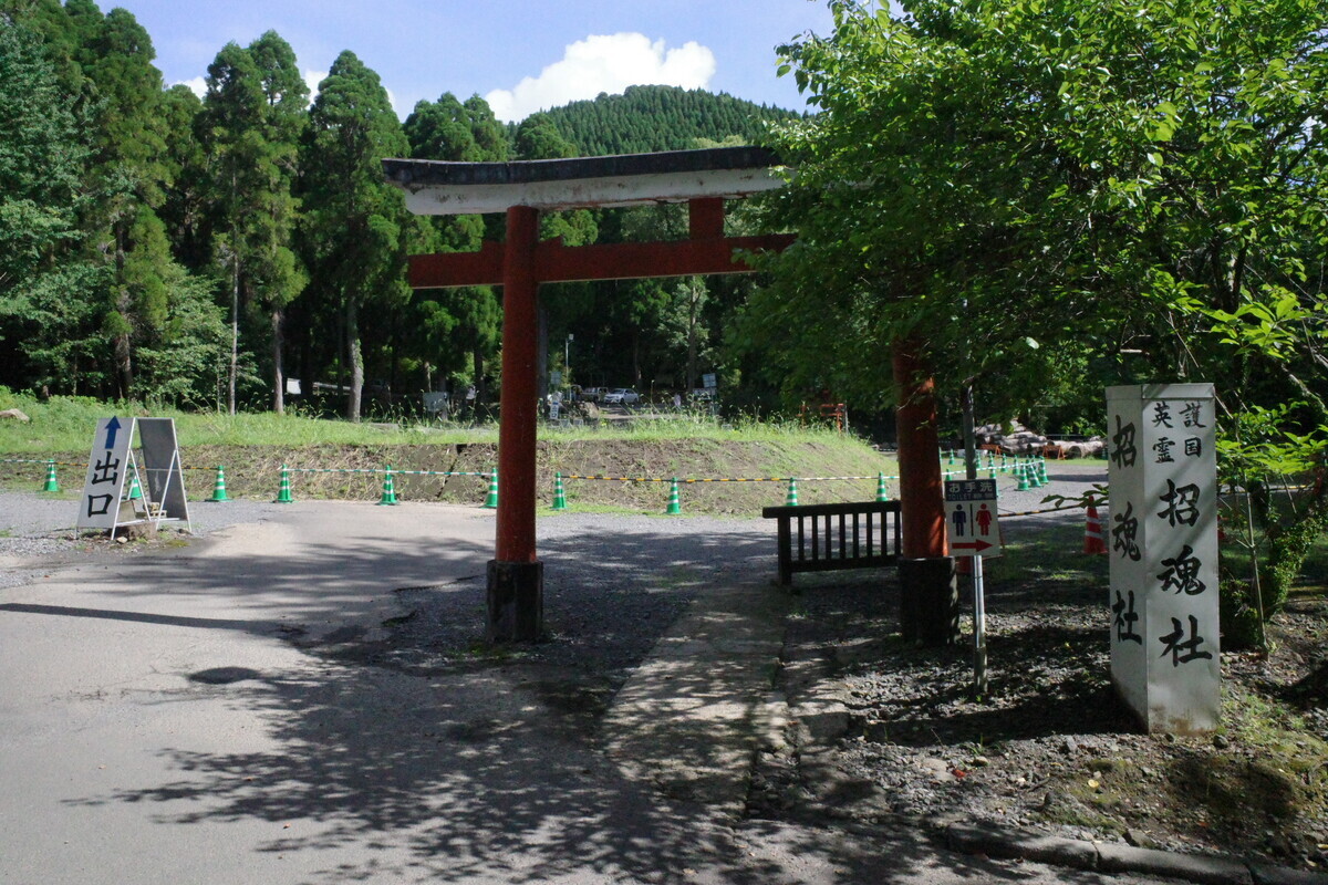 本殿向かって右手に工事中のブロックがあり、その先に招魂社を発見。ていうか案内筒倒れてるけどええのんかこれ(^^;