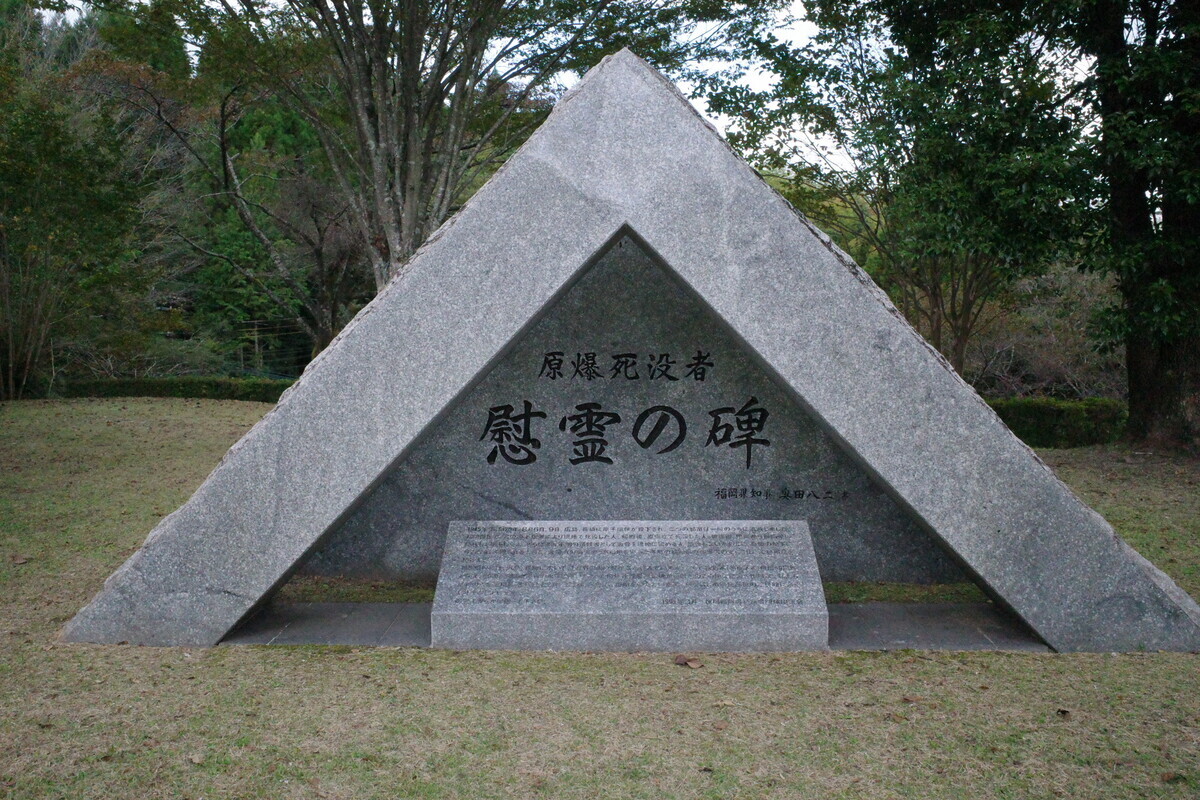 茶の文化館となりにある平和の広場。その奥には三角の塔が立ち、その頂点には小さな炎が揺らいでいます。平和の塔と平和の火です。昭和20年に広島に投下され、町を焼き尽くした原爆の残り火を星野村の山本達雄さんが亡くなった叔父の形見にと持ち帰り大切に守ってきた火です。星野村ではその火を引き継ぎ、平和を祈りながら大切に守り続けています。(星野村観光ナビより)