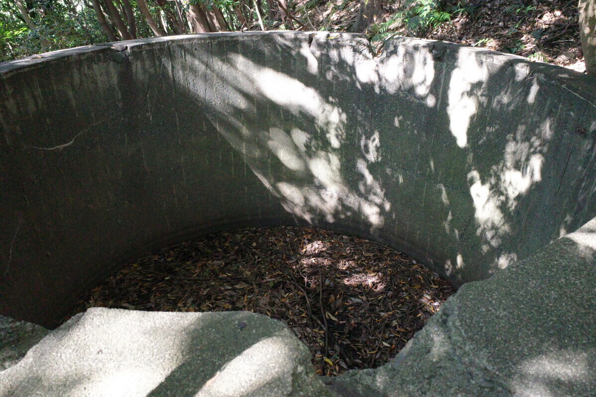 ここから完全に道が無くなっておりますが、ちょうど兵舎の炊事場&風呂の上あたりに〇と▢の水場が残っております。ここって下の井戸から運んで入れてたのか知らん。