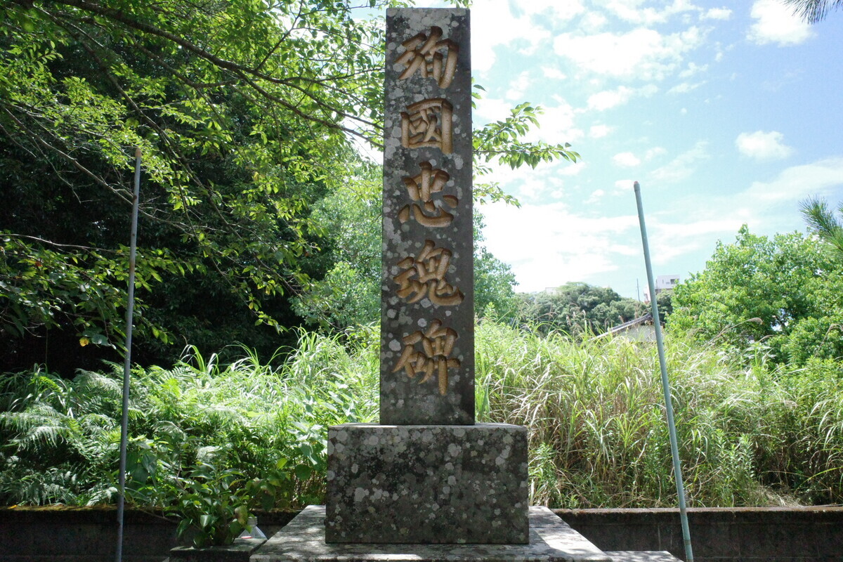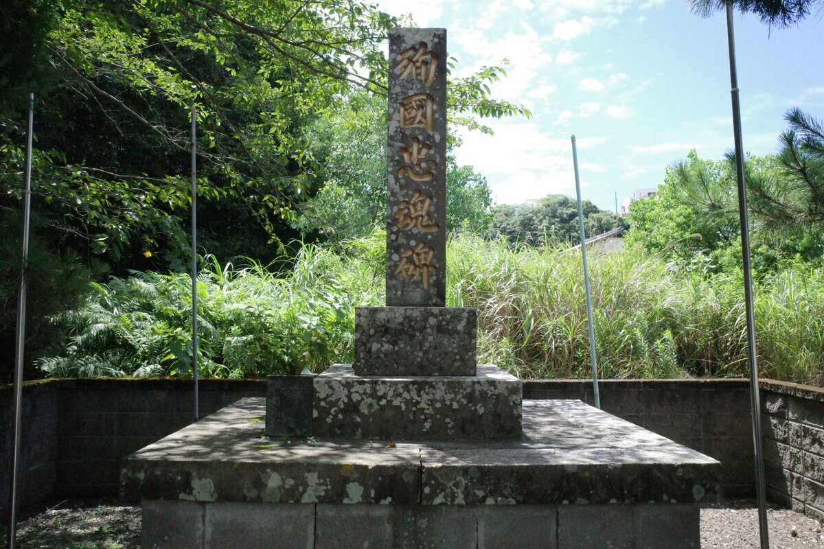 ありました。こちらが地域の英霊を祀った「殉国忠魂碑」です。蝉の声が響く中、手を合わせて慰霊の念を送らせていただきました。
