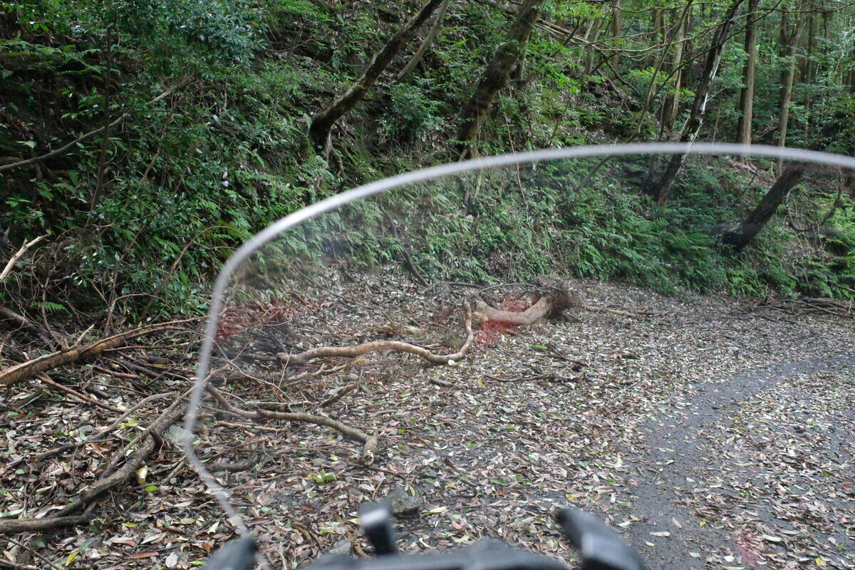 靄の立ち込める葉っぱだらけの林道をひた走ります。後続どころか対向車も全くいない道でVストにお似合いかとも思ったのですがCBRでも割とこういう道は通ってるので新鮮味は無いですハイ。