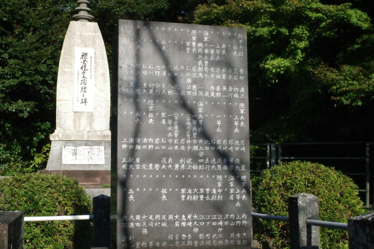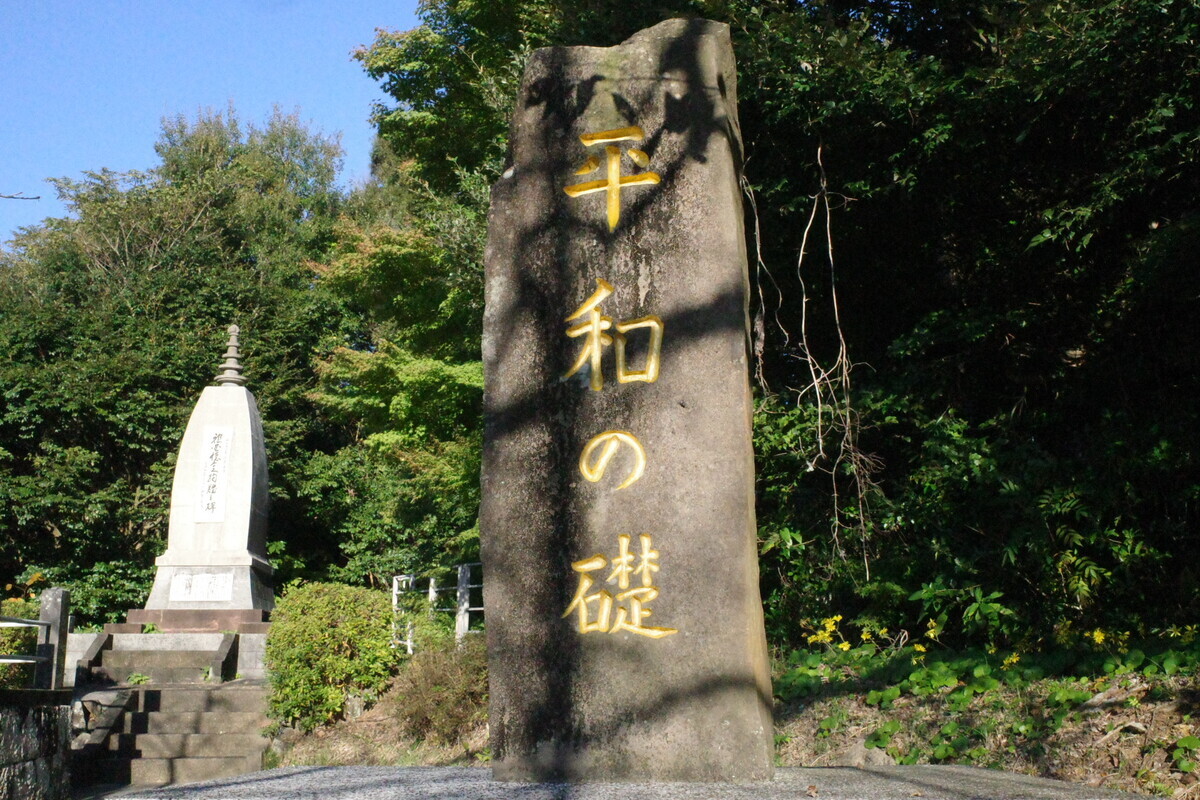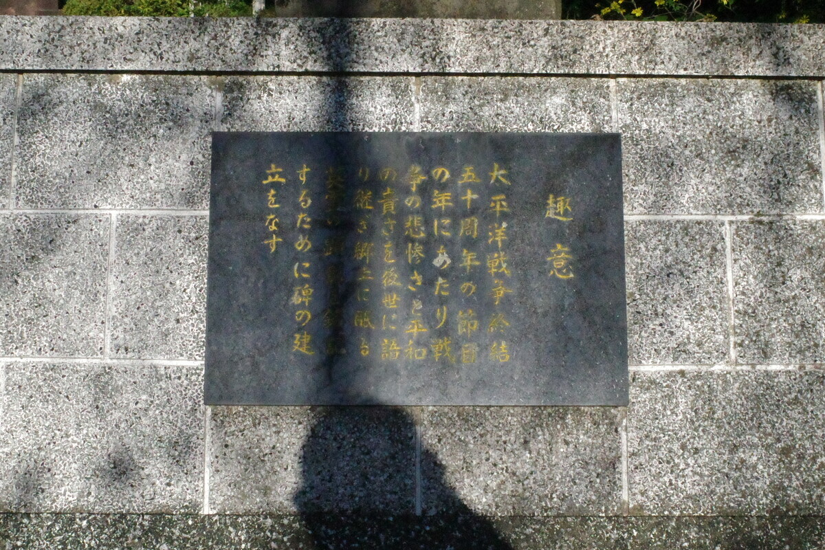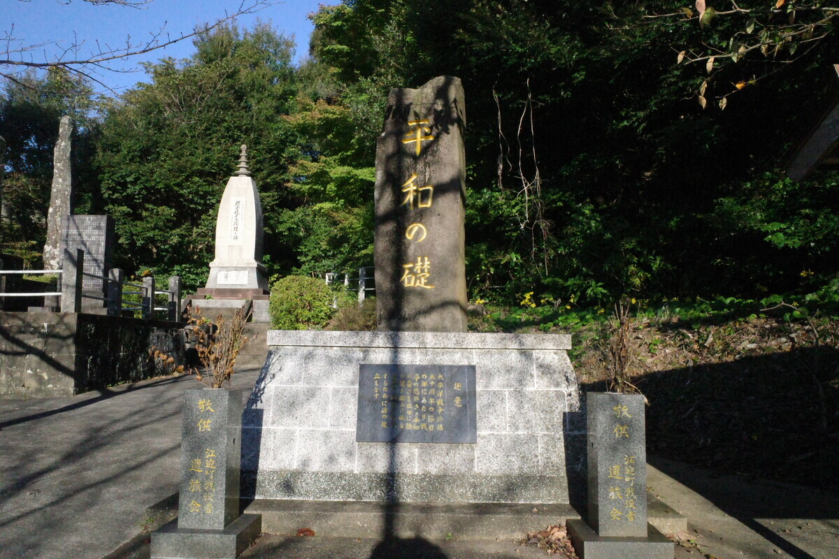 ありました!地域の英霊を祀った「慰霊碑」と「平和の礎」の碑を発見です!!裏には乃木将軍夫妻の碑とか色々集まってる模様。