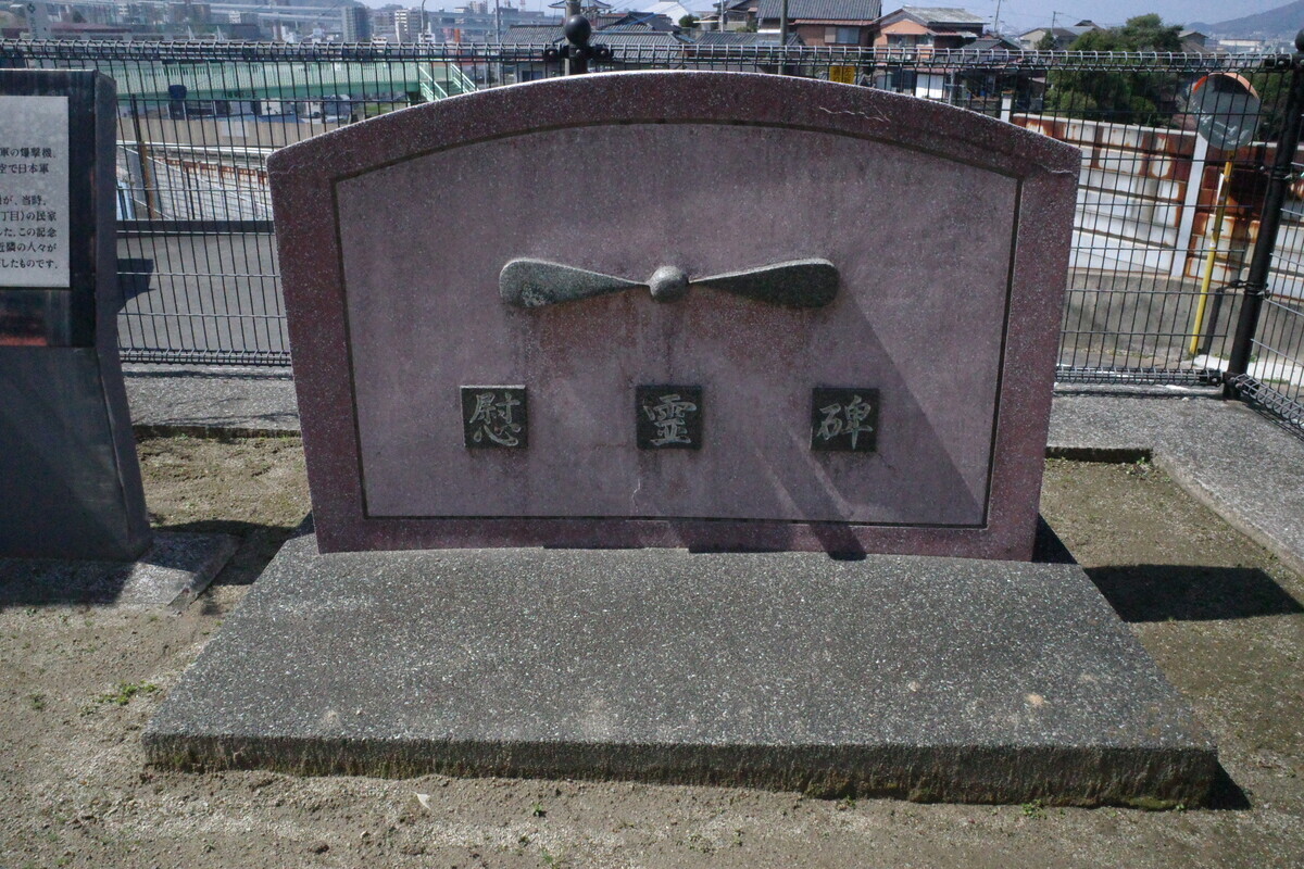 案内板によると、戦闘で墜落した航空機による事故で亡くなった方の慰霊碑とか。小さな公園にある小さな慰霊碑ですが、手を合わせて慰霊の念を送らせていただきました。