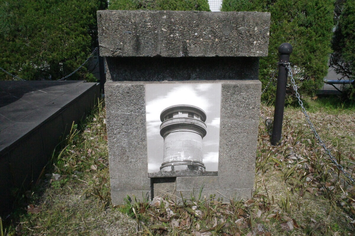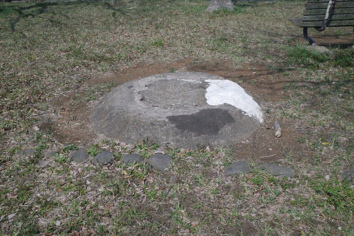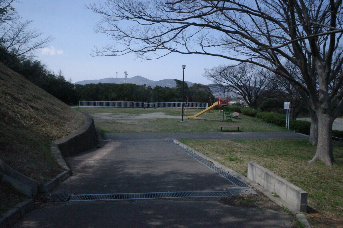 こちら「牧山展望公園」にあります丸いコンクリ痕が高射砲跡地との事。他に何かないか探しまくりましたが、柵下の私有地にそれっぽい杭があるのとグランド近くに古びた杭があるくらいでございました。他に残ってればなー…