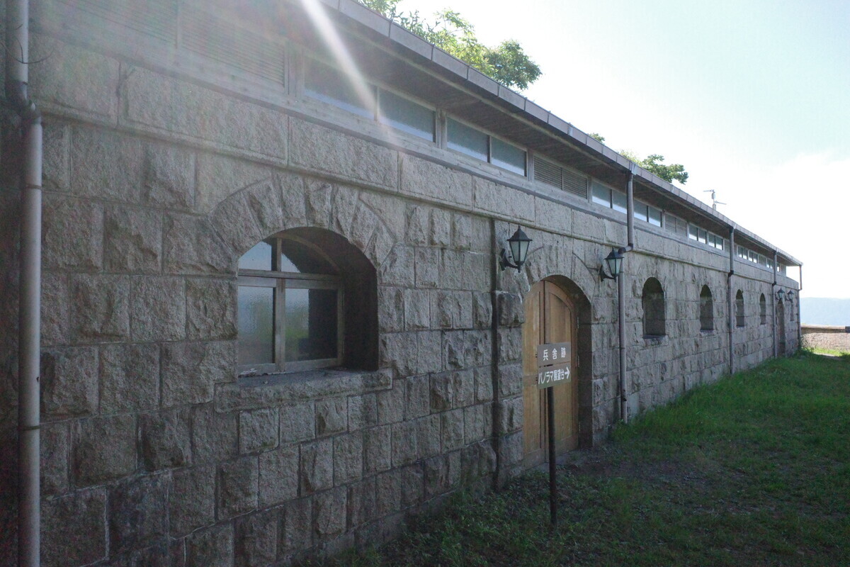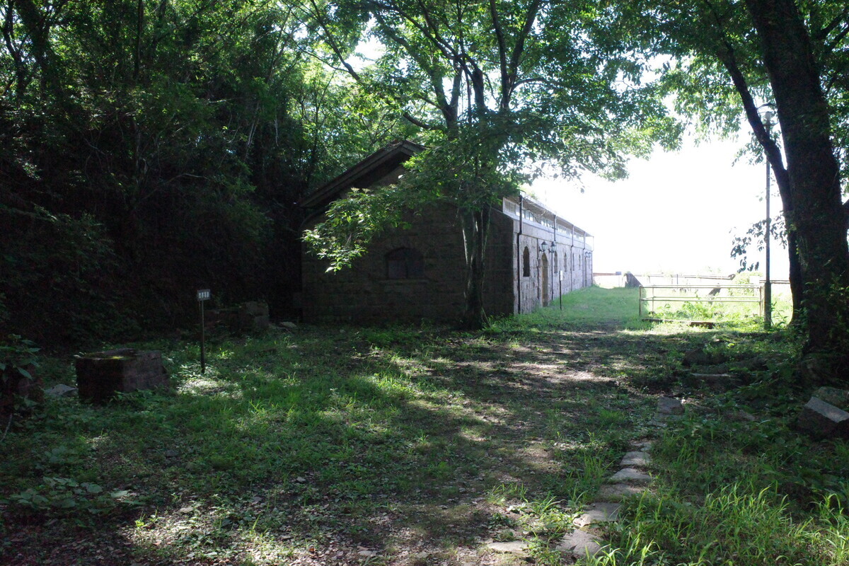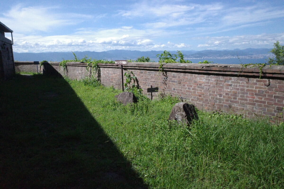 炊事場跡、兵舎跡の向こうには素晴らしい展望が。