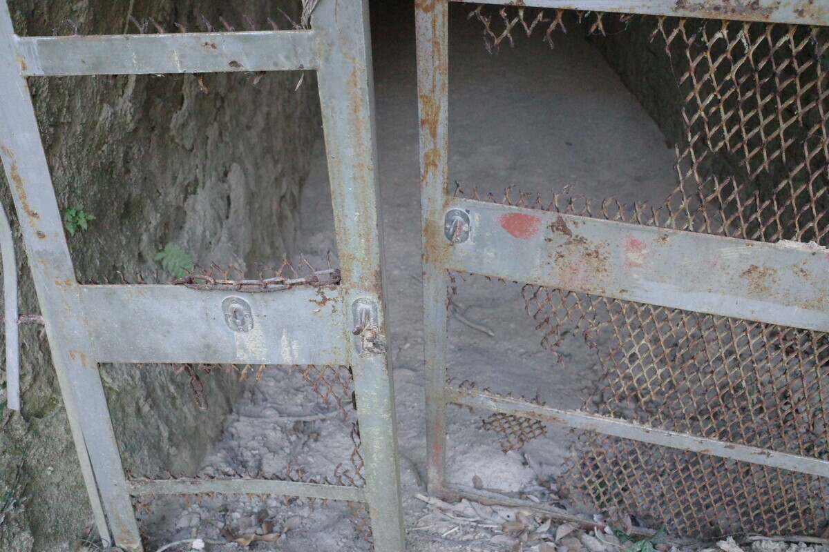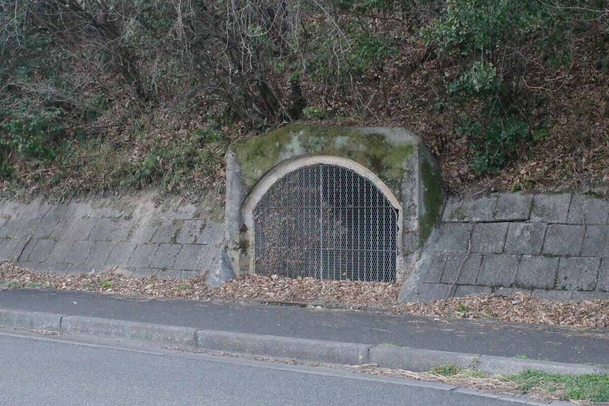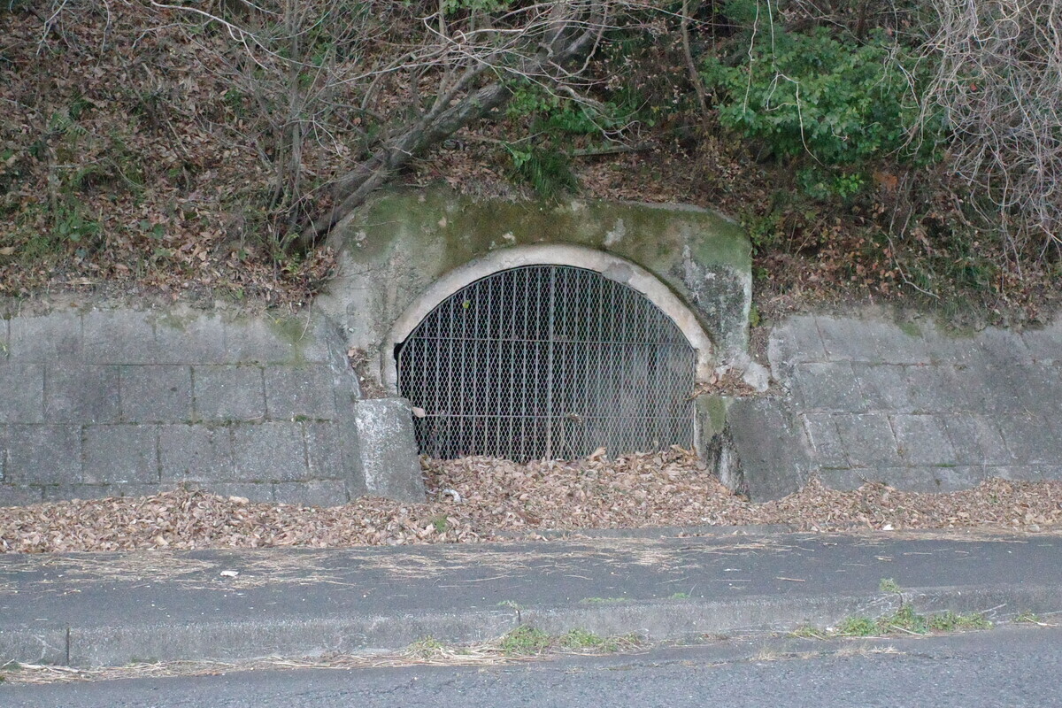 こちらが空襲避難用に掘られたという「高居地下壕」です。入口の扉が壊されて鍵も取られておりますが、参考資料だと立入禁止だったと思うので外から写真をパシャリ。ていうか確かここ150m近い分岐地下壕の筈なので入ったら多分迷う。