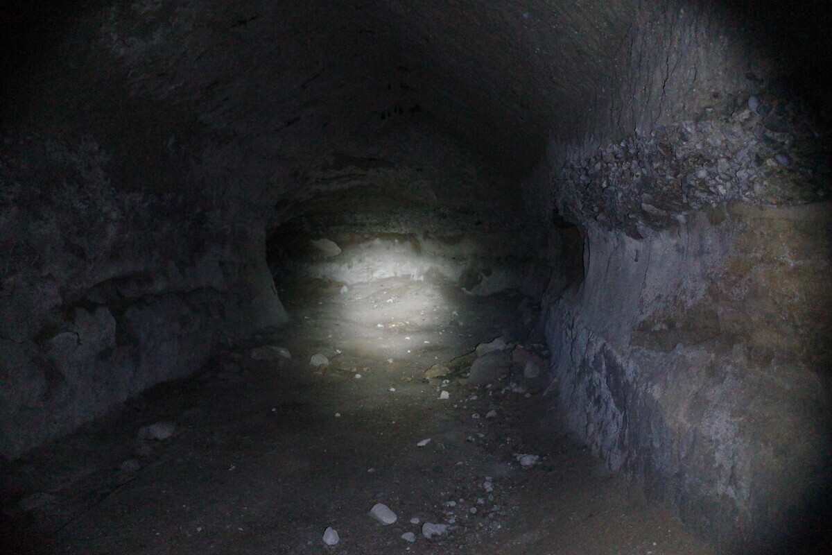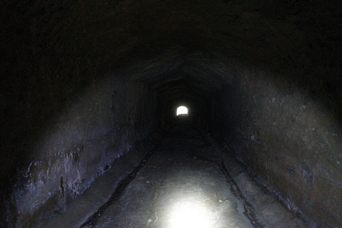 全長は100mも無いくらい。出入口周辺はコンクリで整備してありますが中央部分は手掘りの岩壁っぽい。