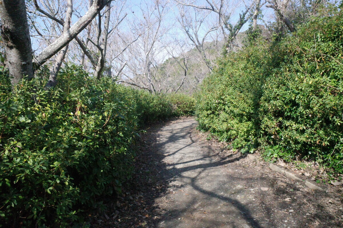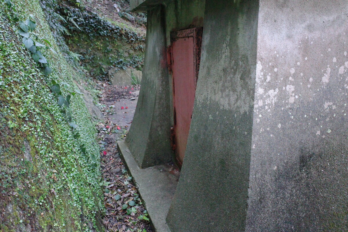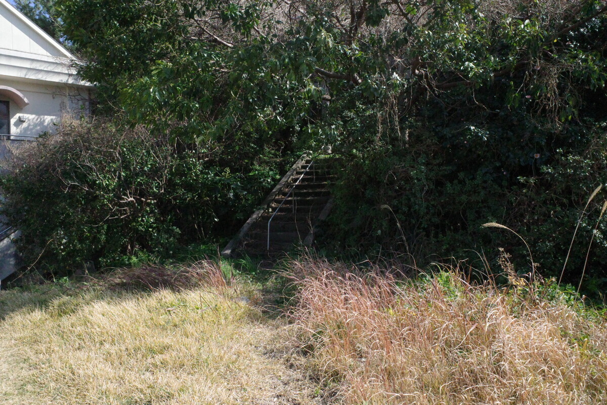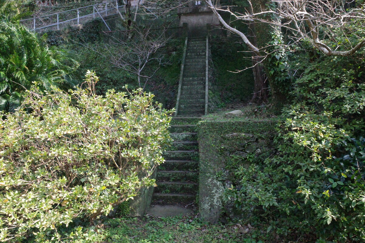道沿いにあった大き目の墓地をグルっと周りますと、裏の小山に続く階段を発見!