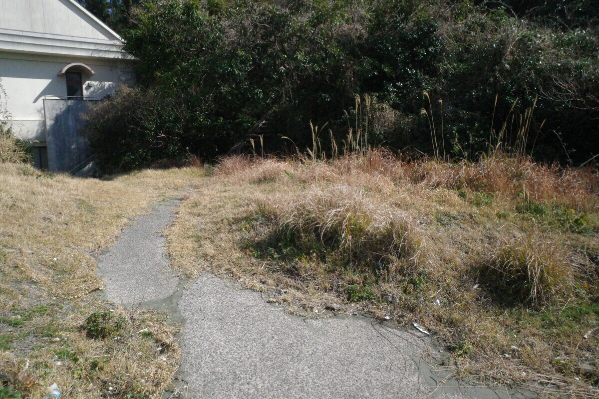 ここは詳しい場所が不明でして、バイクを置いて周囲をグルグル探します。道沿いには無し、上の学校にも無し、海辺にも無し・・・む、ここか?