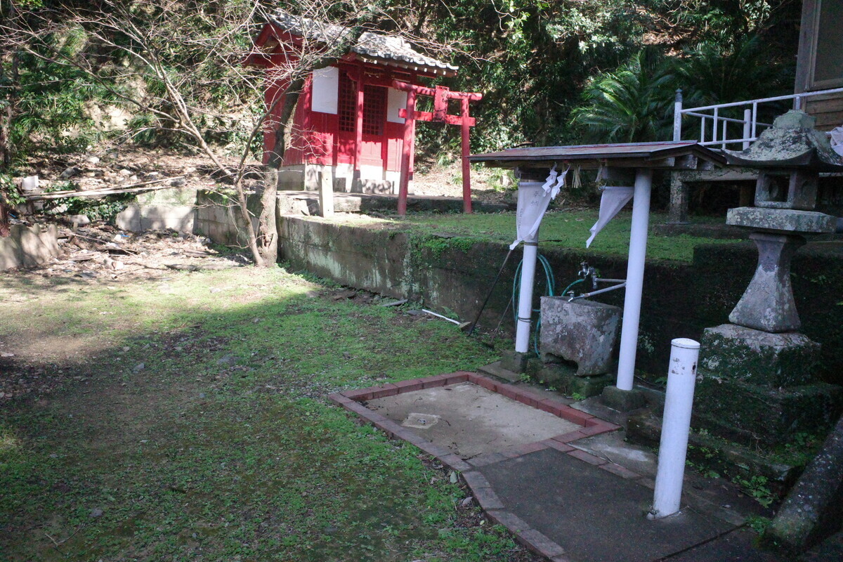 境内にある末社にも向かいますが、塩ビパイプとコンクリで作られた鳥居がチョット良い感じ。あったけぇぜ(=゚ω゚)